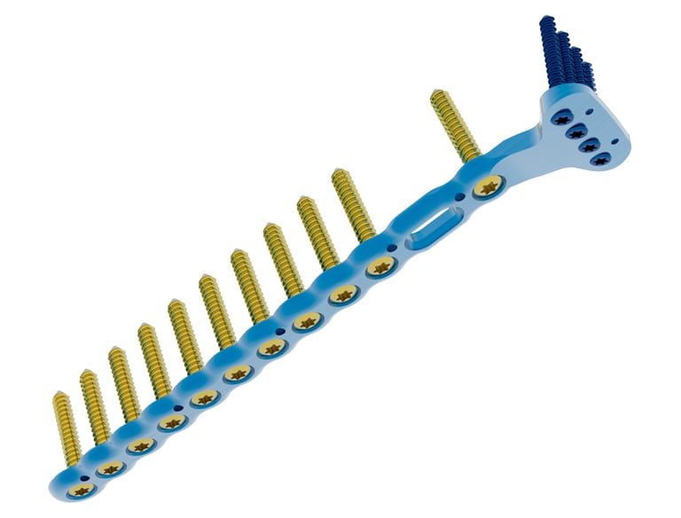 Placas para osteosíntesis en 3.5 y 4.5. Disponemos de implantes traumatológicos para fémur, tibia, muñeca, calcáneo, minifragmentos y más.