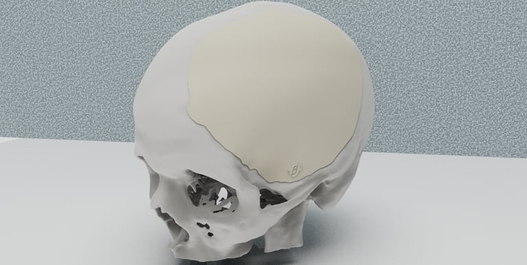 Líderes en la fabricación de craneoplastías en Polimetilmetacrilato: tiempos récord de fabricación a partir de la tomografía con el defecto óseo. Diseñamos, fabricamos y esterilizamos.